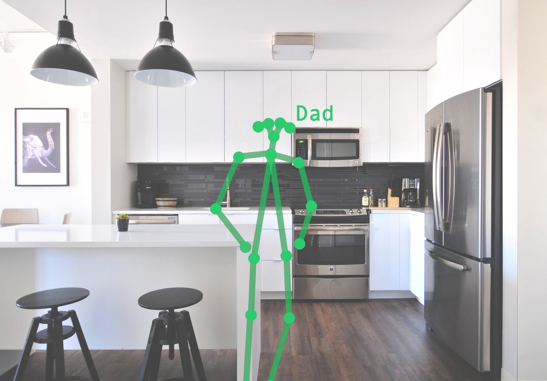 Privacy-preserving stick figures are transmitted instead of videos, allowing the sensor to be placed anywhere in the home.